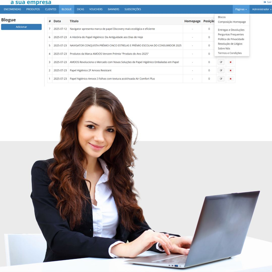 Este é o nosso plano mais completo, desenhado para empresas consolidadas que exigem uma presença online vasta, detalhada e, acima de tudo, dinâmica.